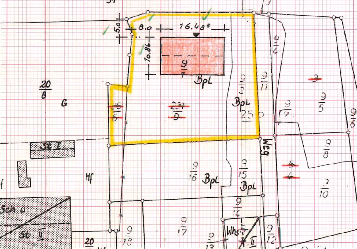Die folgenden Unterlagen stehen für Gebäude 1 zur Verfügung: Bauschein, Baubeschreibung, Schornsteinfegerprotokoll, Ansichten, Grundrisse, Schnitt, Lageplan.